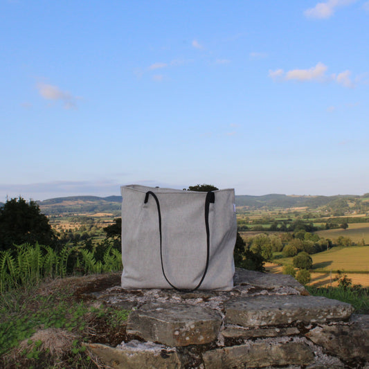Summer Bag in Grey & Black Canvas, Lightweight, Spacious, Made in UK