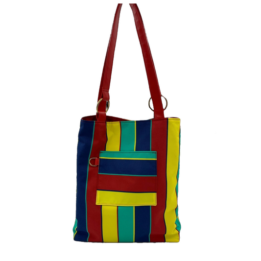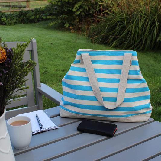Striped Waterproof Large Slouch Bag or Shopping Bag, Unique, Handcrafted