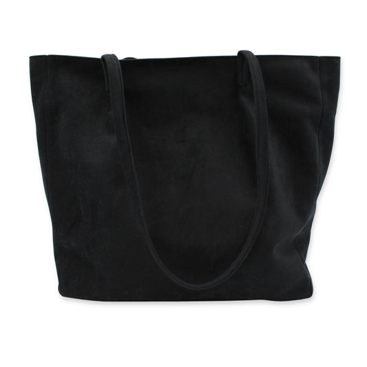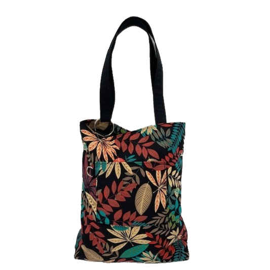 Canvas Beach Bag - Black with Tropical Printed Pattern