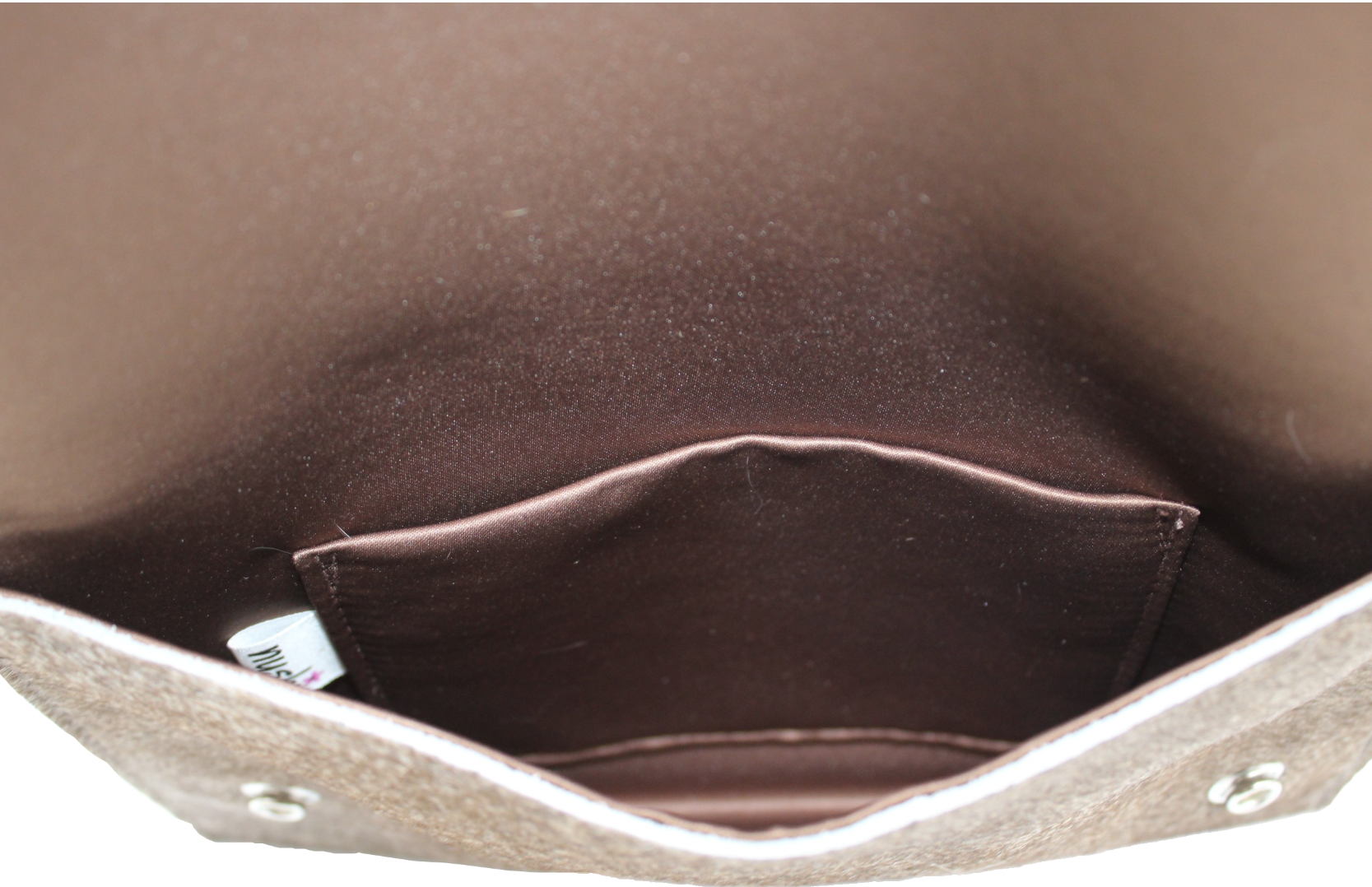 - Brown satin effect contrasting lining