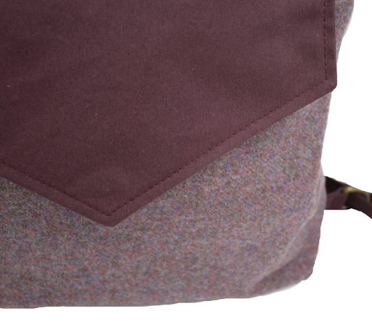 Heather Pink British Tweed Backpack with Contrasting Waxed Cotton Flap