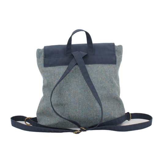 Sea Mist Blue British Tweed Backpack with Contrasting Waxed Cotton Flap
