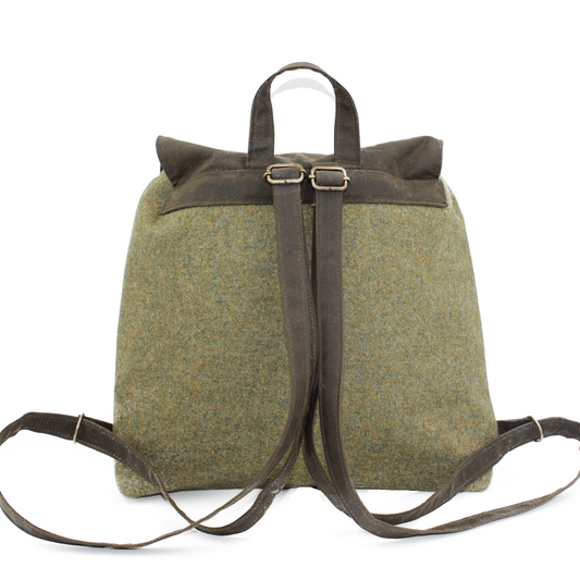 Moss Green British Tweed Backpack with Contrasting Waxed Cotton Detailing
